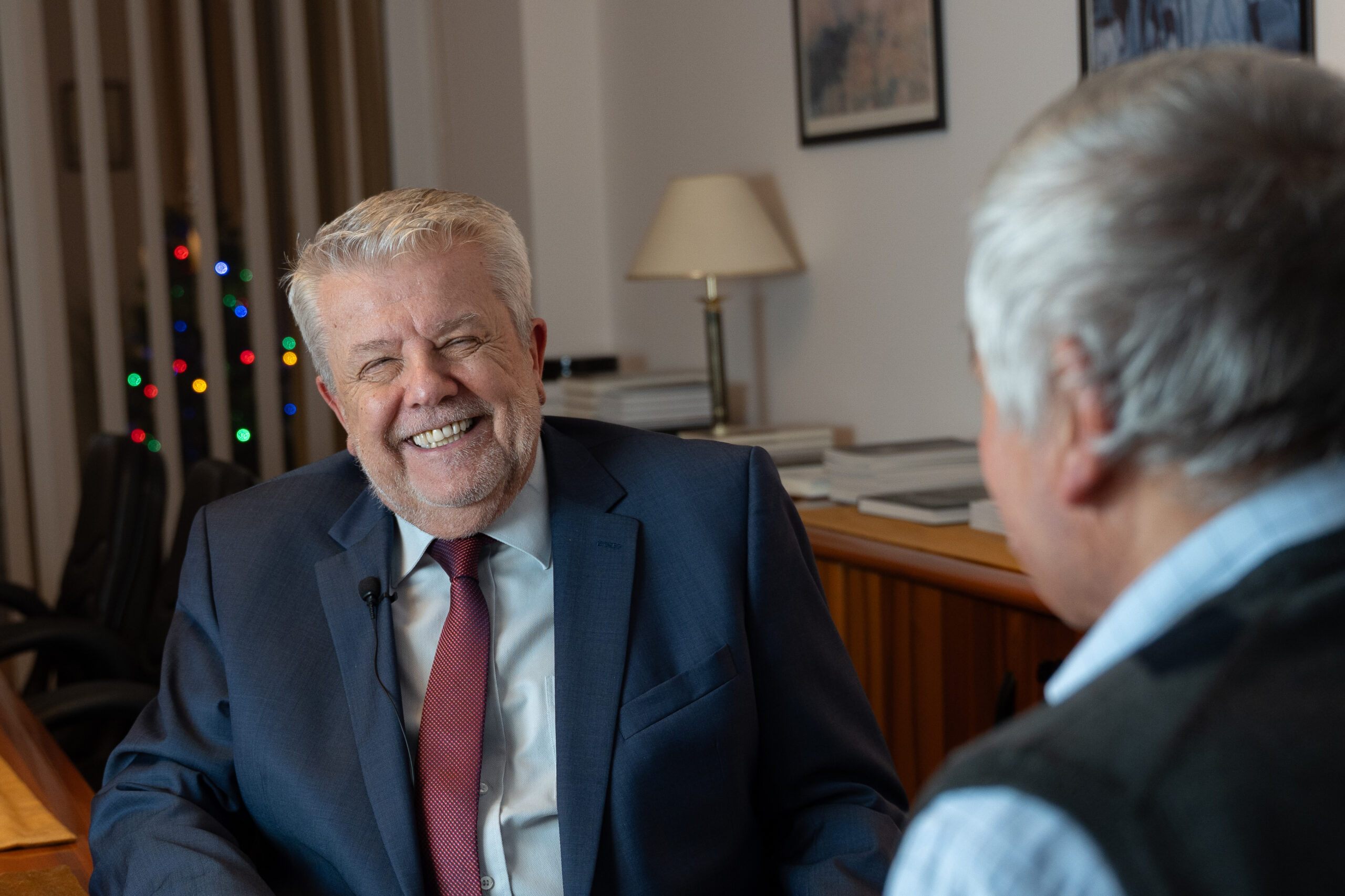 Csizmadia László, a CÖF-CÖKA kuratóriumi elnöke a Civilek Podcast adásának felvételén – Fotó: civilek.info