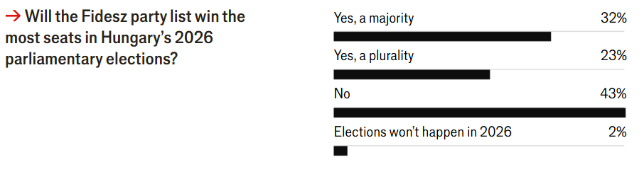 A szóbeli elemzés helyett konkrét számokat közlő szervezet szerint arra a kérdésre, hogy „A Fidesz listája nyeri-e a legtöbb mandátumot a 2026-os magyar parlamenti választásokon?”, az alábbi válaszarányok születtek: