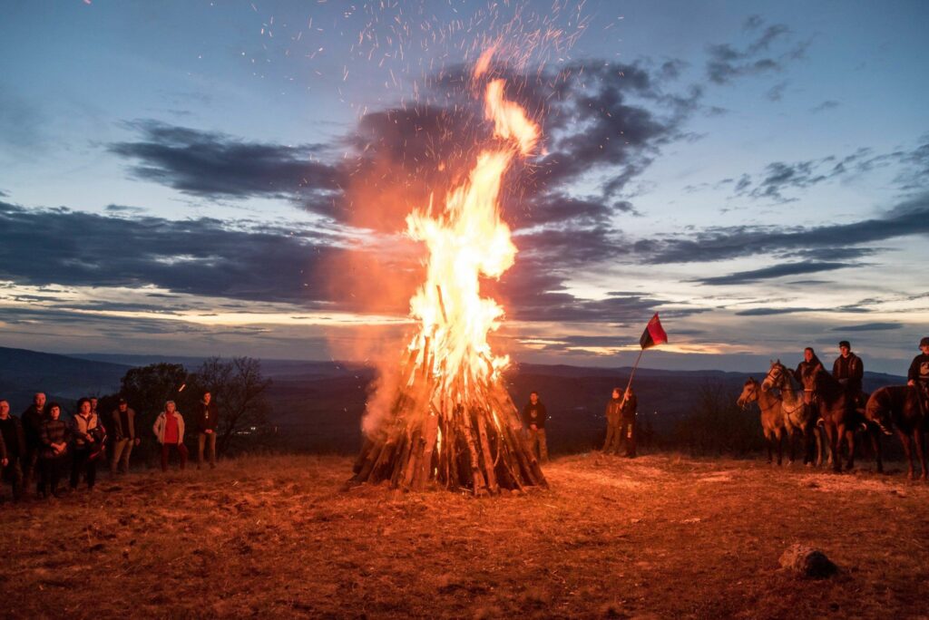 Ugyanabban az időben lobogott a tűz a vajdasági Oromon is. A helyiek szombat este pontban 20:22 perckor gyújtották meg,