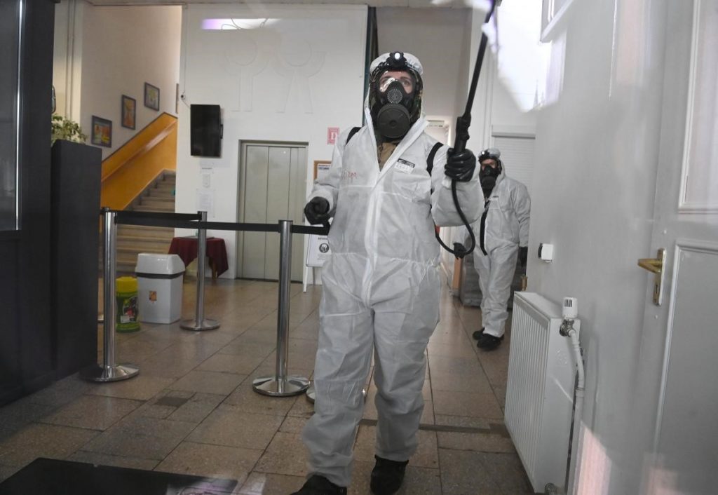 Tegnap utolsóként Budapesten, a IV. kerületi Erkel Gyula Újpesti Zenei Alapfokú Művészeti Iskola fertőtlenítését végezték el a katonák.