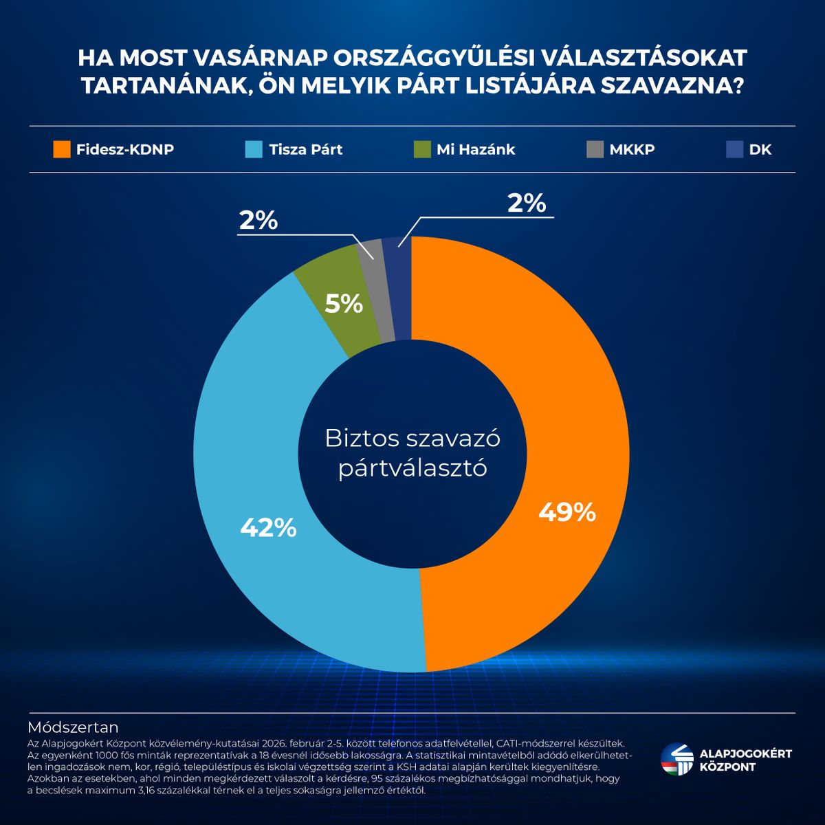 A pártpreferencia-adatok az utóbbi hónapokban hibahatáron belüli mértékben változtak, a kormánypártok előnye 5 és 9 százalékpont között stabilizálódott. Az Alapjogokért Központ közleménye szerint