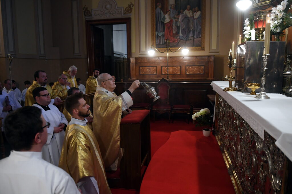 Borítókép: Erdő Péter bíboros, esztergom-budapesti érsek (j) az utolsó vacsora emlékére celebrált nagycsütörtöki szentmise végén, miután az Oltáriszentséget a bíboros a téli kápolnába vitte az esztergomi Nagyboldogasszony- és Szent Adalbert-főszékesegyházban 2025. április 17-én.