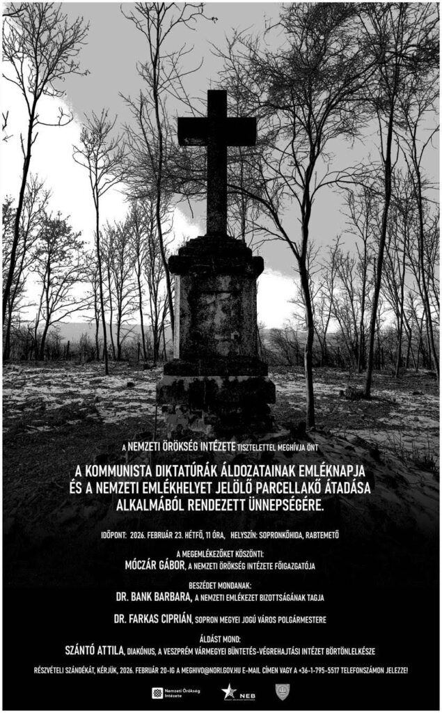 A Nemzeti Örökség Intézete ünnepséget tart a kommunista diktatúrák áldozatainak emléknapja és a Nemzeti Emlékhelyet jelölő parcellakő átadása alkalmából.