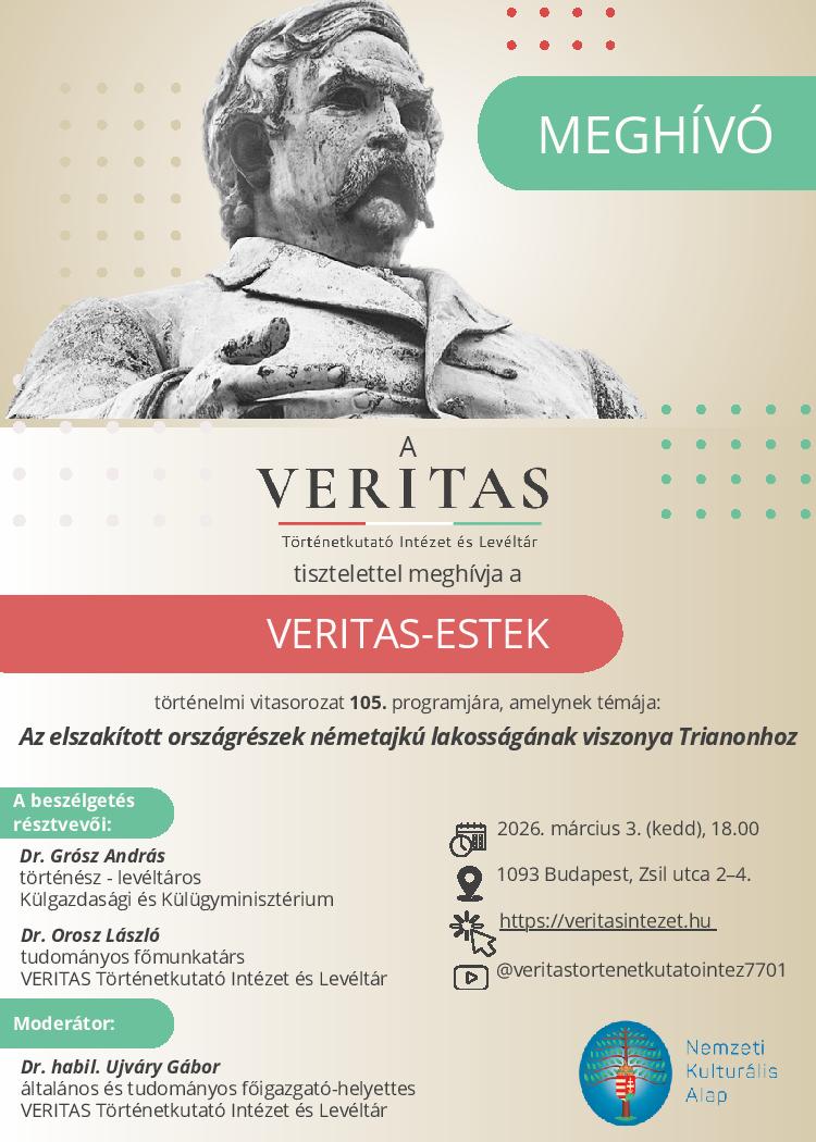 Tisztelettel meghívjuk a soron következő VERITAS-estünkre, melynek időpontja 2026. március 3. (kedd) 18:00