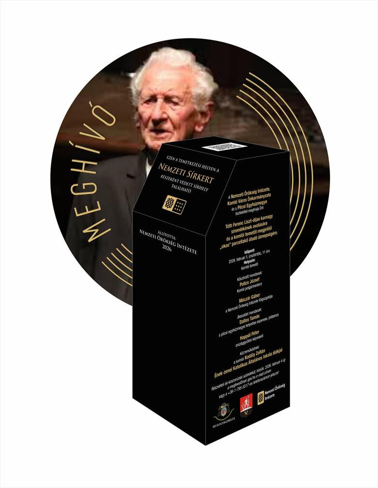 A Nemzeti Örökség Intézete, Komló Város Önkormányzata és a Pécsi Egyházmegye szervezésében Tóth Ferenc Liszt-díjas karnagy síremlékének avatására és a komlói temetőt megjelölő „okos” parcellakő átadó ünnepségére kerül sor február 5-én.