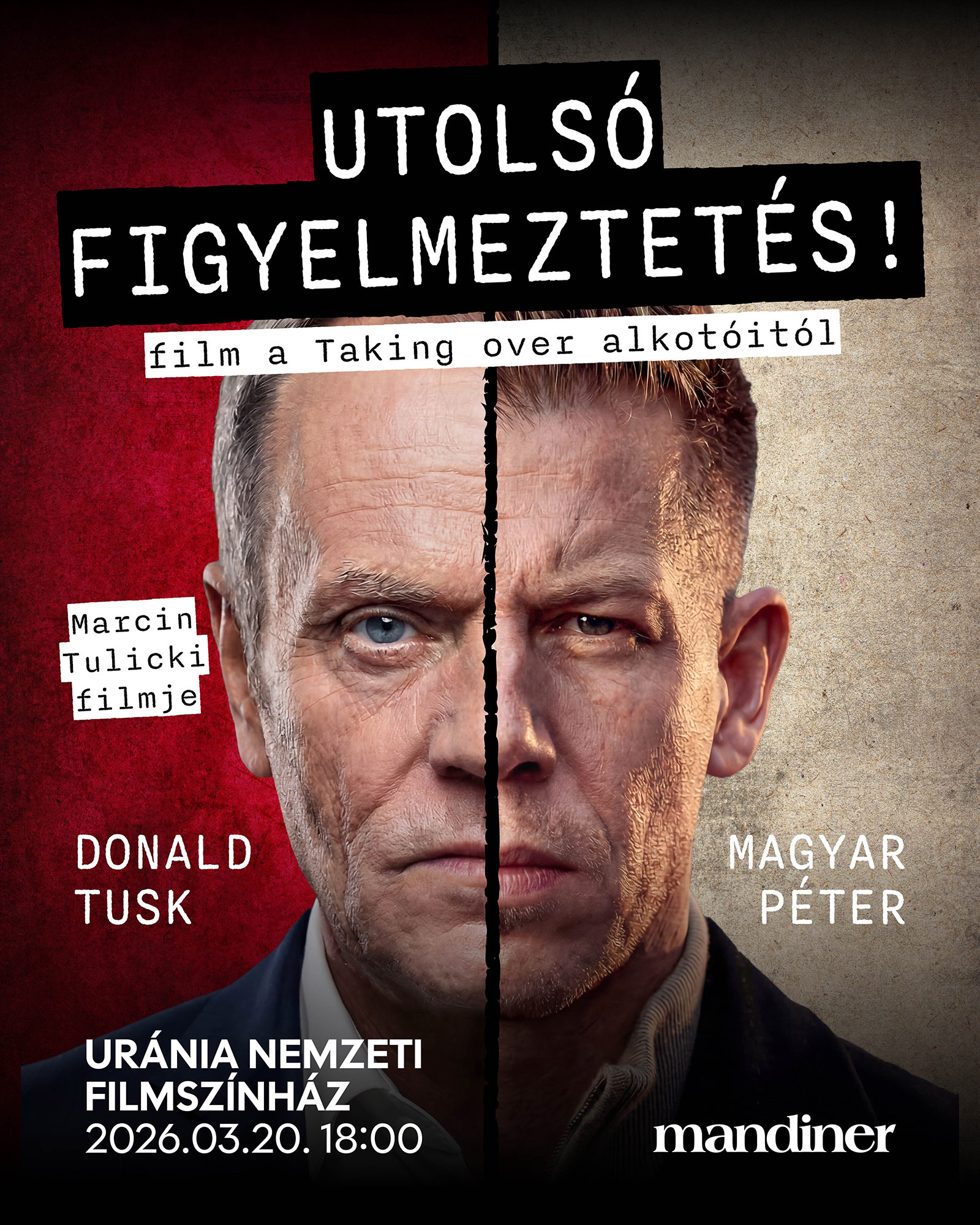 Ezeket a kérdéseket vizsgálja Michał Karnowski legújabb dokumentumfilmje, a Last Warning / Utolsó figyelmeztetés, párhuzamba állítva Magyar és Tusk politikai akcióit. A lengyel újságíró és filmkészítő neve ismerős lehet: ő jegyzi a hazánkban is nagy visszhangot kiváltó Taking Over című filmet is, ami Lengyelország politikai folyamatait, a jelenlegi kabinet által elkövetett jogsértéseket és a politikai üldöztetéseket mutatta be.