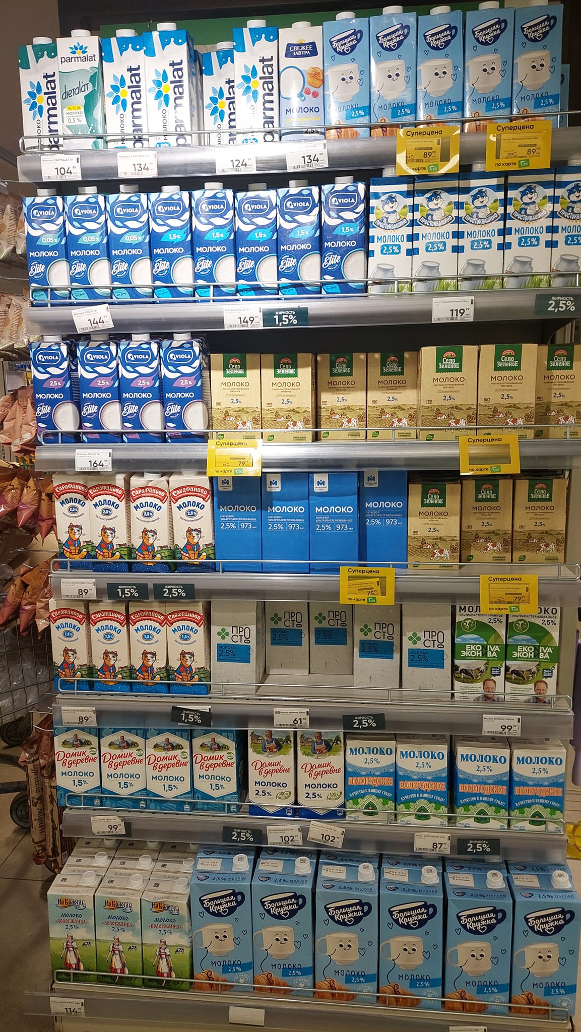 Az első megállapítás, hogy az oroszok élelmiszerből már önellátók. A második, hogy ha jól megfigyelik, akkor – főként a nem alap élelmiszerekből – nyugati márkák is bőven vannak.
