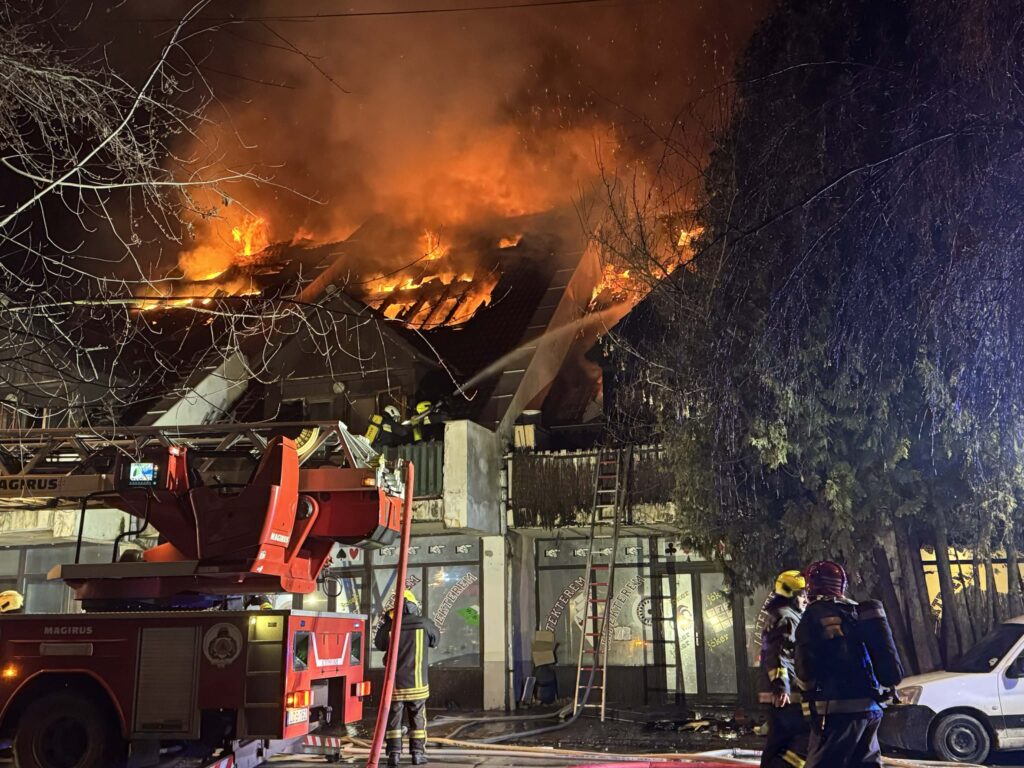 A tűz feltehetően hajnali 2.15 körül keletkezett, ahogy azt írtuk, egy felrobbant gázpalack miatt. A kétszintes épületegyüttesből több embert kimentettek. A fővárosi hivatásos tűzoltók nagy erőkkel vonultak a helyszínre.