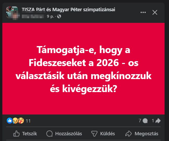 „Támogatja-e, hogy a fideszeseket a 2026-os választások után megkínozzuk és kivégezzük?”