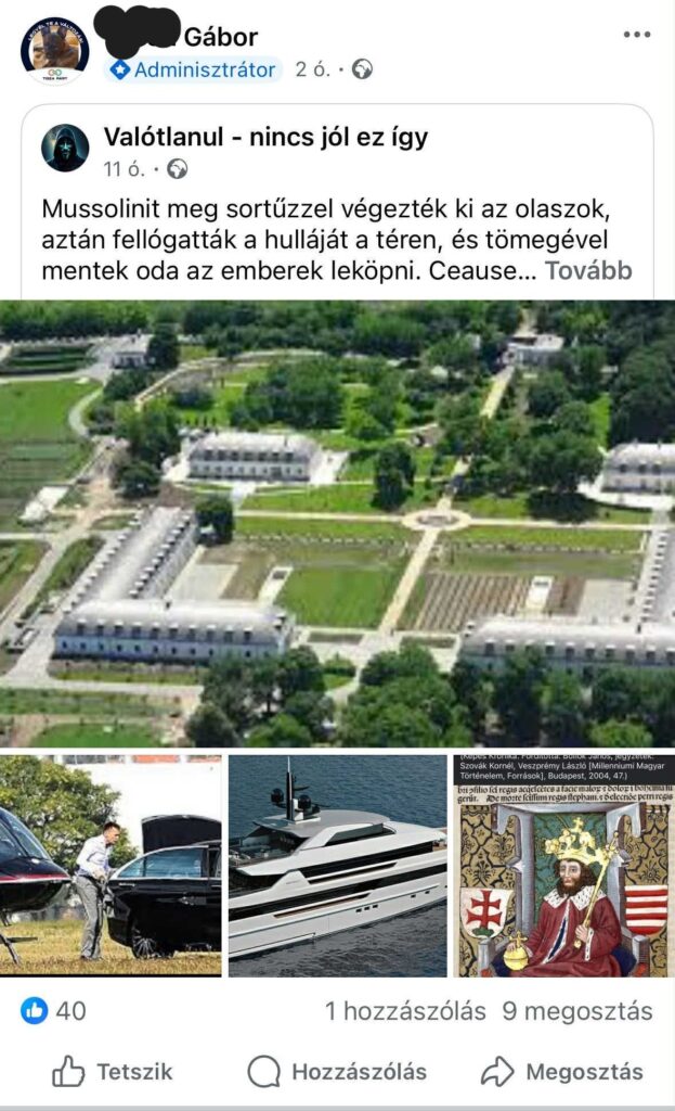 A bejegyzéshez mellékeltek képet jachtról, Hatvanpusztáról, Rogán Antalról, illetve egy képernyőfelvételt is csatoltak, amelyen Orbán Balázs Orseolo Péter szerepét firtatja a magyar történelemben.