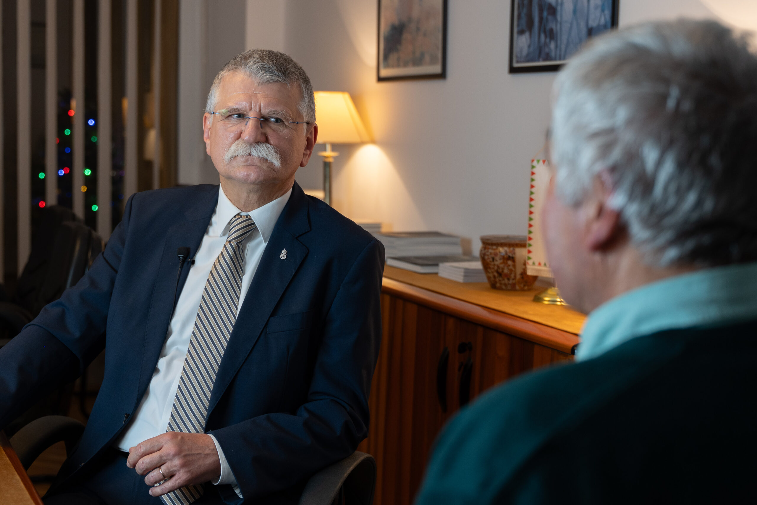 Kövér László, az Országgyűlés elnöke a Civilek Podcast adásának felvételén – Fotó: civilek.info