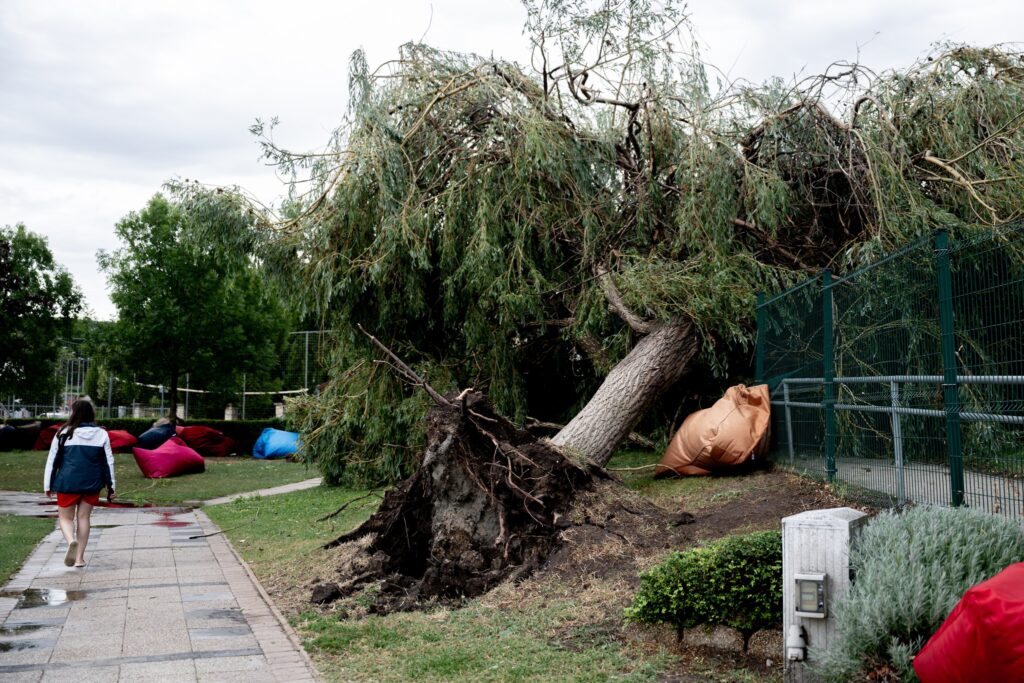 A tájékoztatás szerint az országon hétfőn átvonuló zivatar számos helyen óránként 100 kilométert meghaladó orkánerejű szél, a hirtelen lezúduló nagy mennyiségű csapadék és helyenként jégeső miatt a villamos hálózatra dőlő fák, leszakadt ágak sok helyen vezetékszakadást idéztek elő,