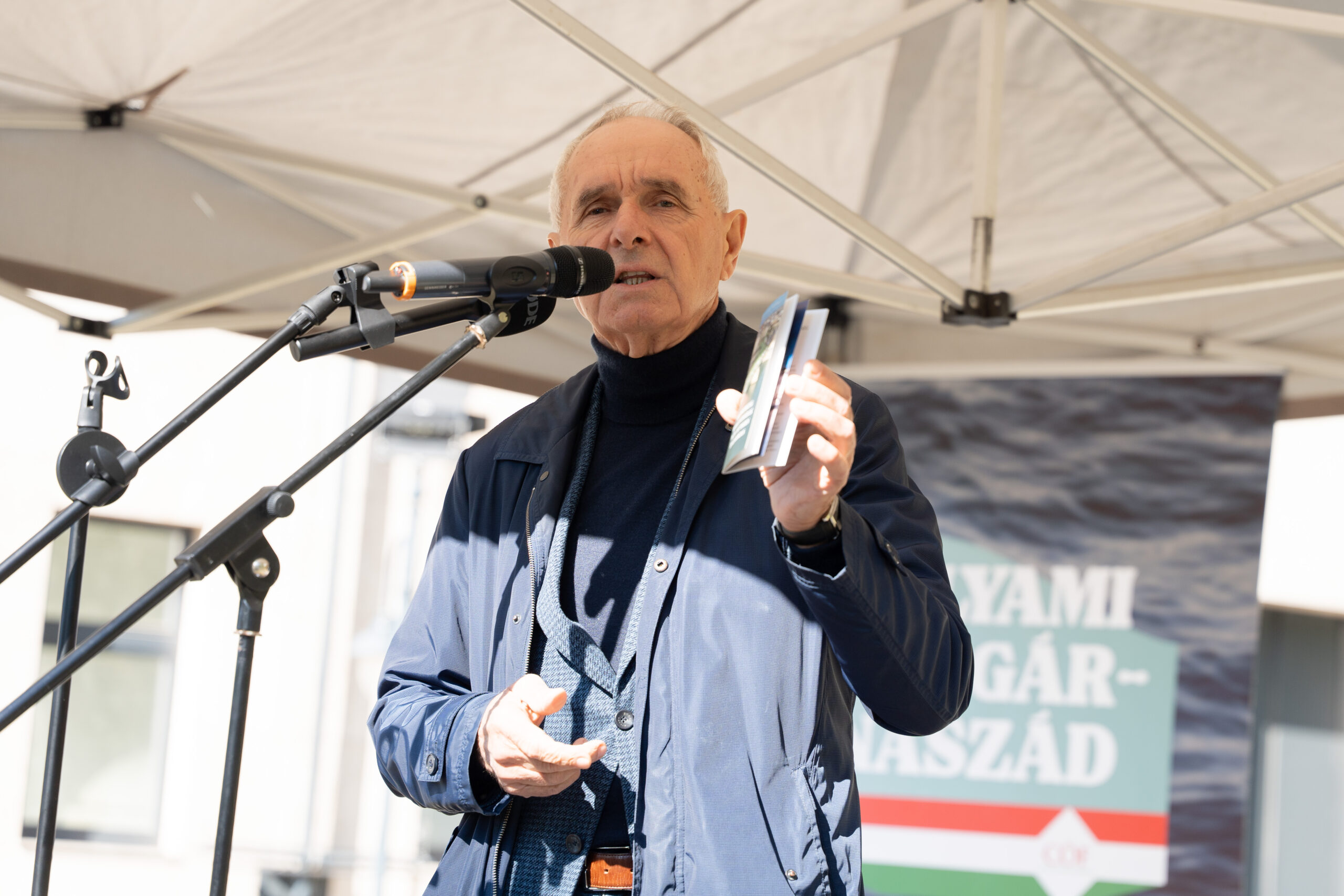 Ifj. Lomnici Zoltán a CÖF-CÖKA szóvivője, a Századvég Közéleti Tudásközpont Alapítvány tudományos igazgatója a globalisták ás patrióták közötti választást helyezte beszéde fókuszába, fontosnak tartotta megemlíteni azt is, hogy a brüsszeli liberális elit irányította Tisza Párt nem nyert még meg magyarországi megmérettetést egyszer sem.