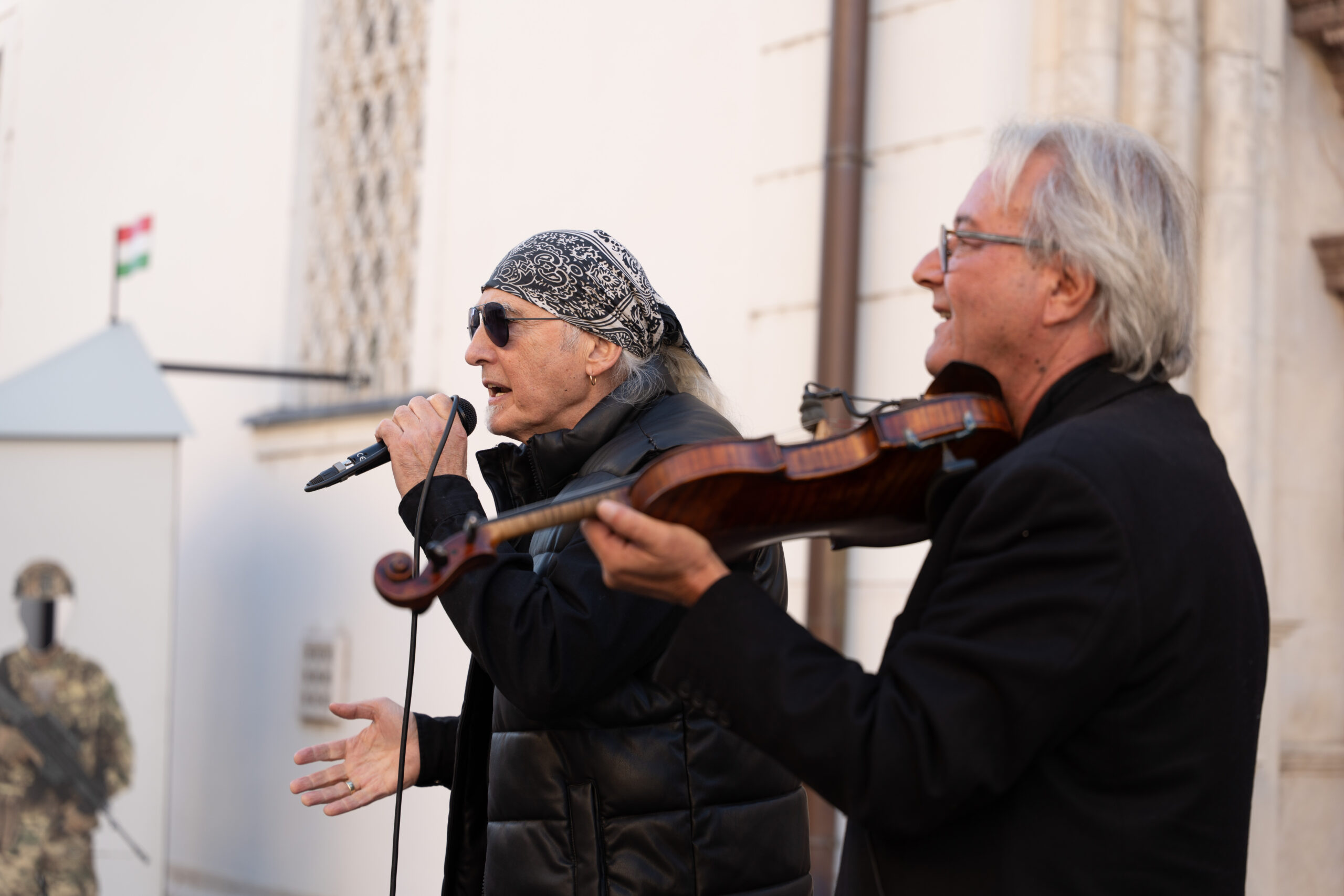 Mr. Basary és Gáspár Álmos, a Kormorán zenekar tagjai a Folyami Polgárnaszád eseményén Székesfehérváron / Fotó: civilek.info