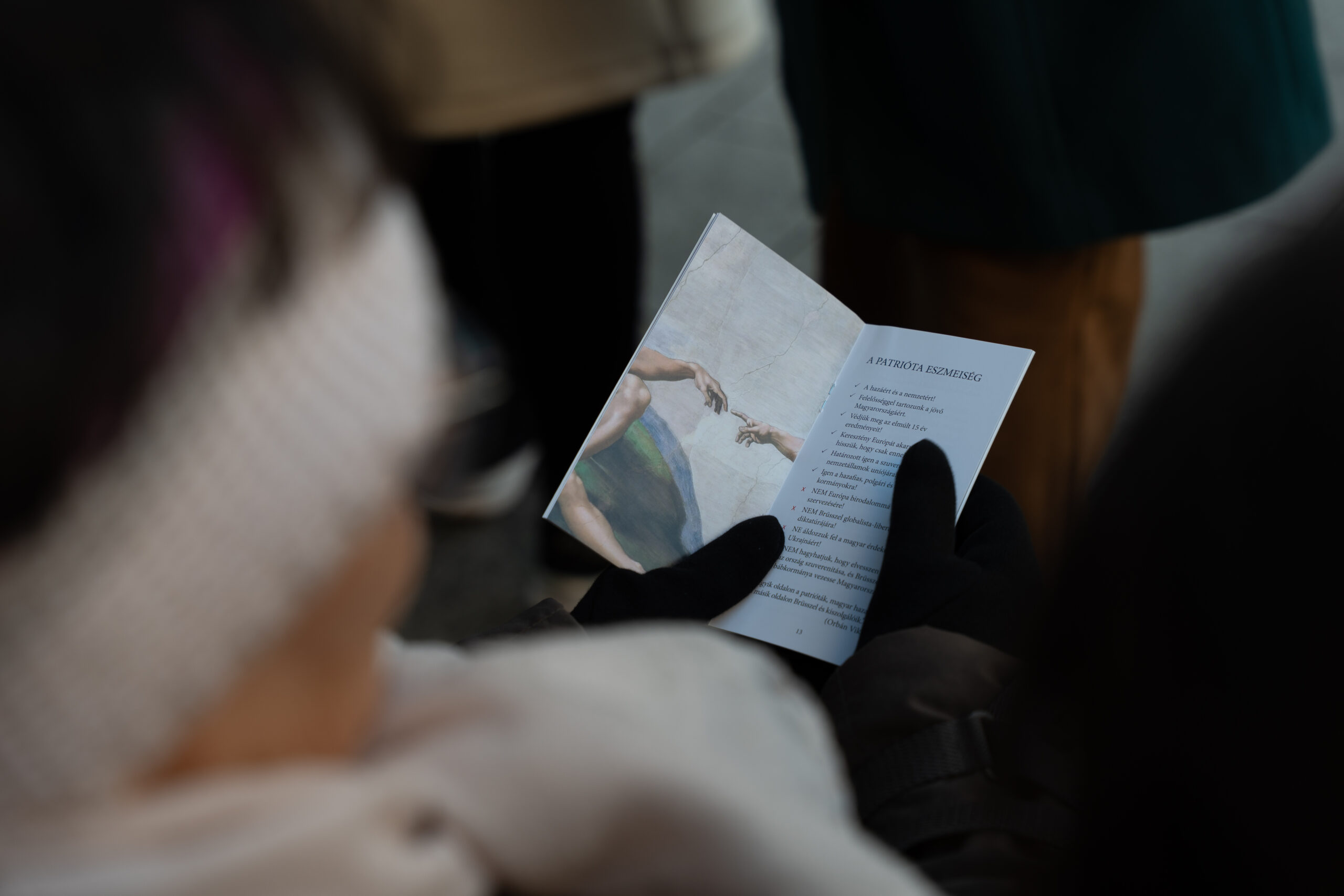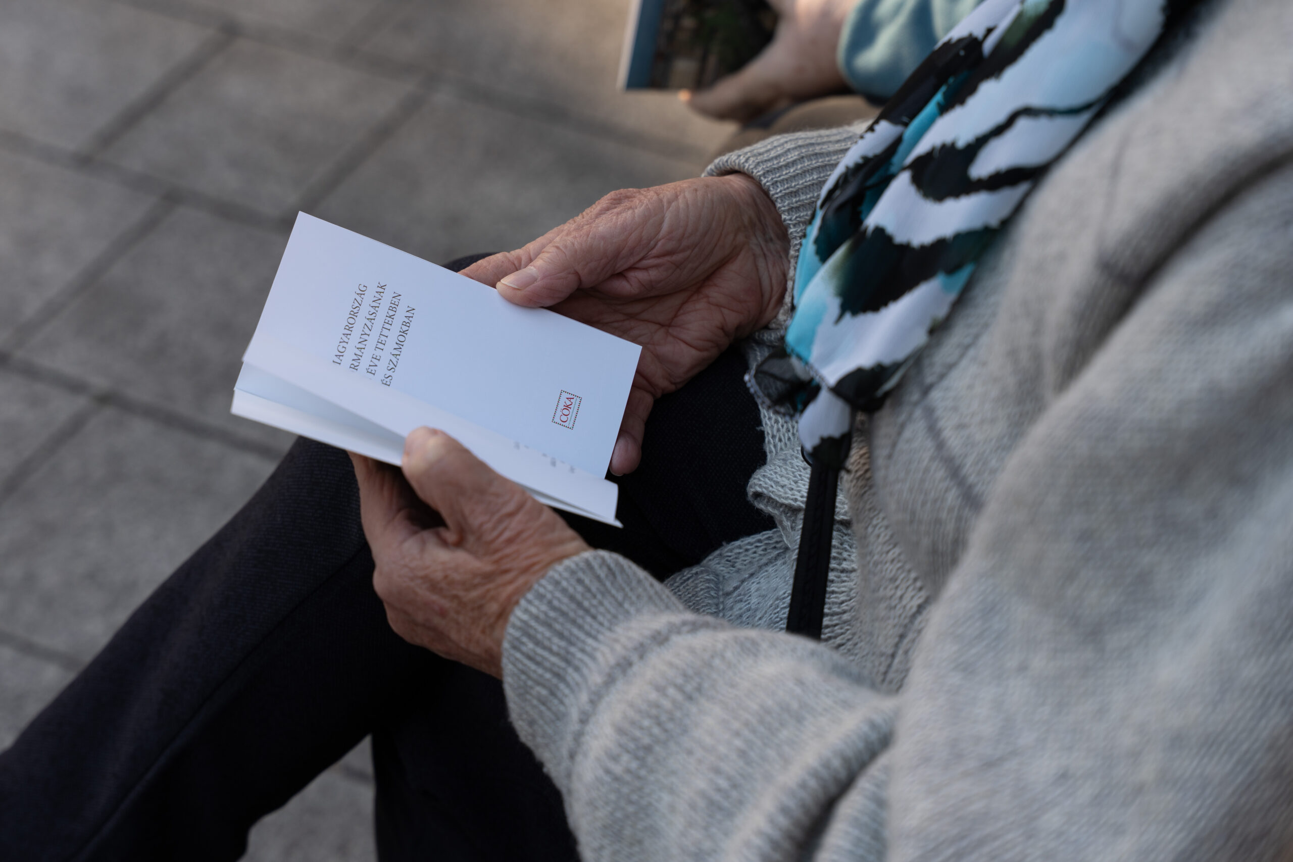 A CÖF-CÖKA kiadványát olvasó résztvevő a Folyami Polgárnaszád eseményén Székesfehérváron / Fotó: civilek.info