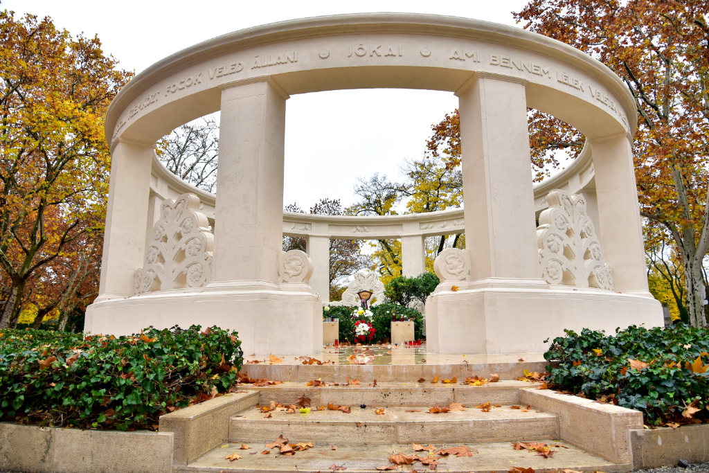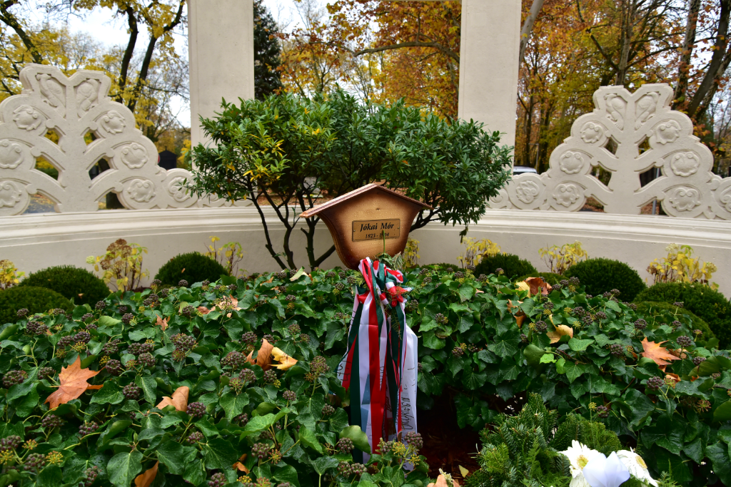 A magyar irodalom egyik legnagyobb alakja, Jókai Mór 1904. május 5-én hunyt el. Bár végakarata ellenére nem a szeretett svábhegyi kertjében temették el, azt az óhaját telesítette az utókor, hogy hantja fölé nem emelt síremléket. Később egy felülről nyitott, gyűrű alakú szecessziós építménnyel mégis körbevették az író nyughelyét. A második világháborúban, majd a kommunizmus évtizedeiben az építmény állaga jelentősen leromlott, idén azonban a Jókai 200 emlékévhez kapcsolódóan teljes körűen felújították. Móczár Gáborral, a Nemzeti Örökség Intézete (NÖRI) főigazgatójával jártuk körbe a síremléket.