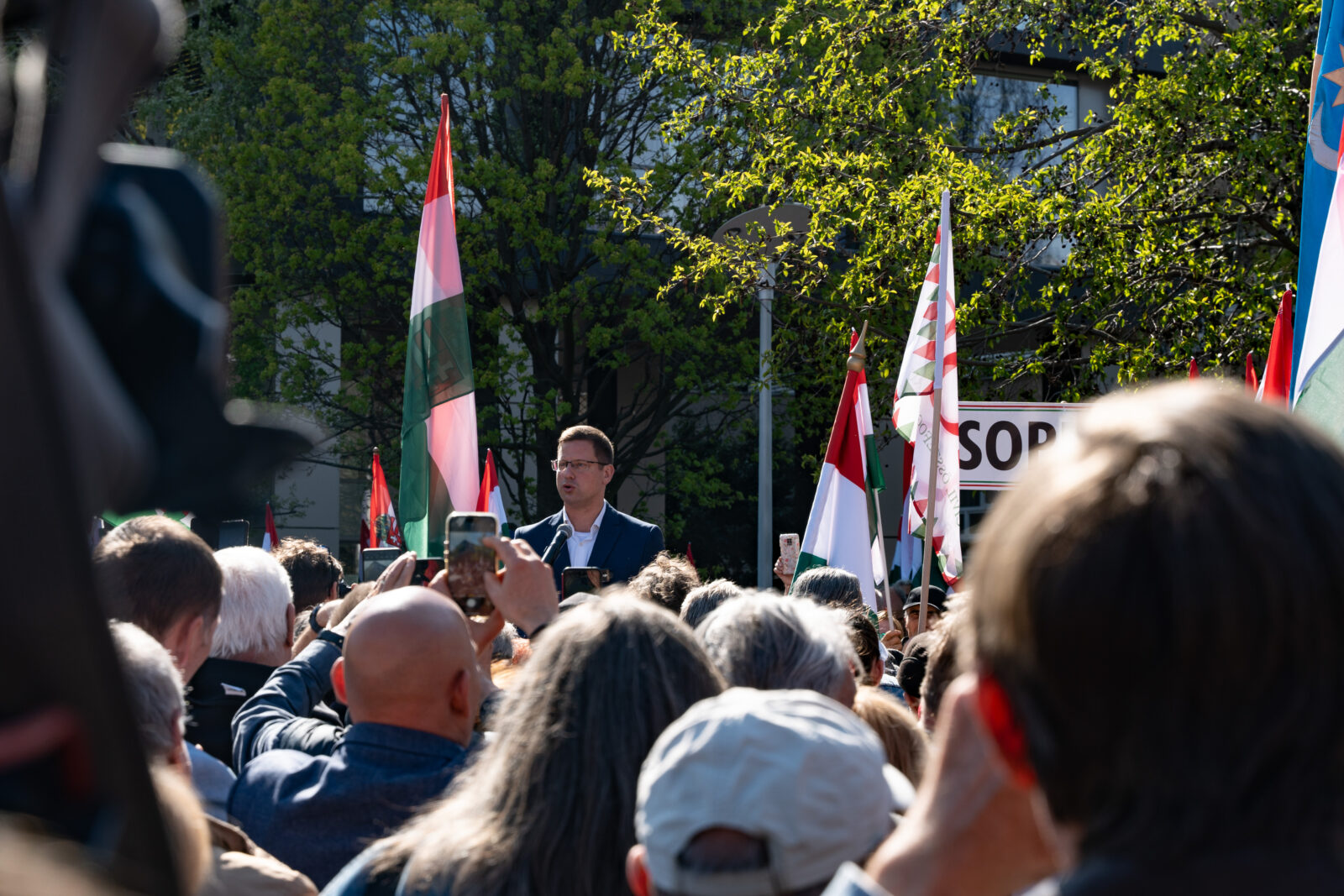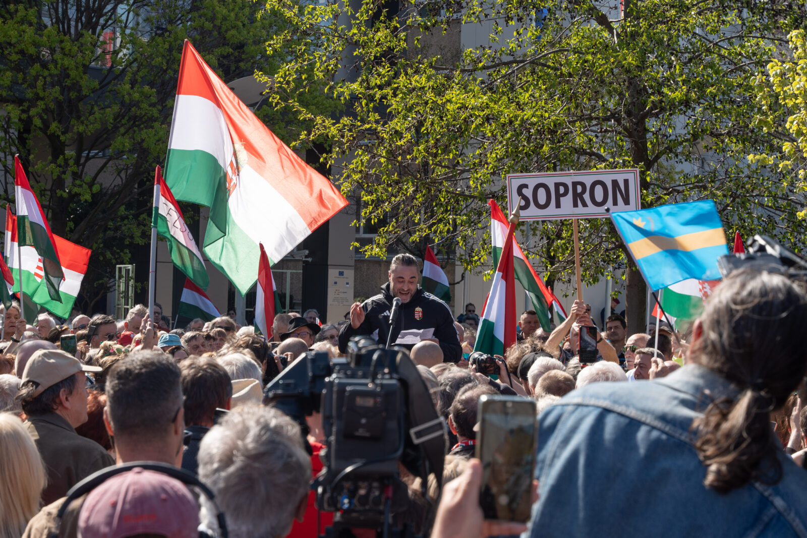 A demonsrtáción felszólalt a miniszter mellett Apáti Bence, Menczer Tamás, a Fidesz kommunikációs igazgatója és Bayer Zsolt is.