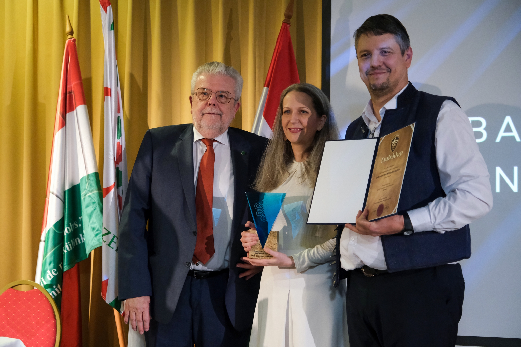 A néptánccsoport nevében néptánccsoport nevében, hogy Szabó Csaba, az együttes művészeti vezetője, Szabó Eszter, Novák Panna és Nagy Márton vette át a díjat Csizmadia Lászlótól.