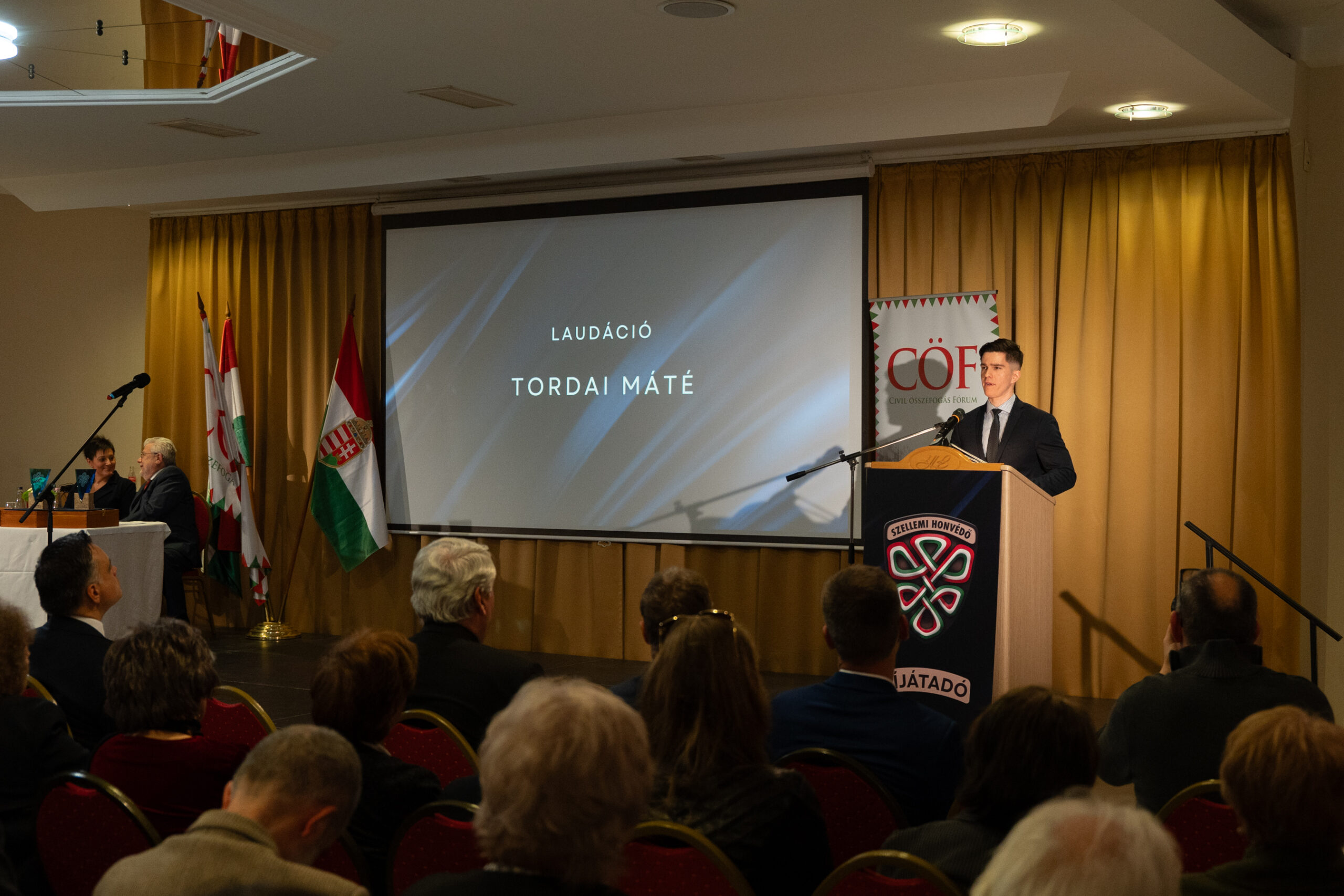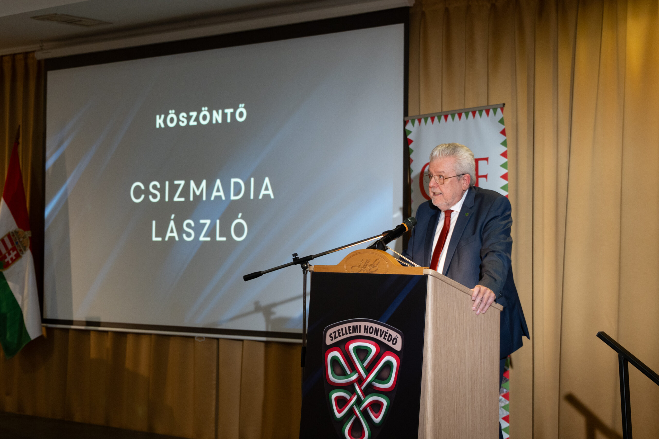 A rendezvény első felszólalója Csizmadia László, a CÖF-CÖKA elnöke volt, aki a díjátadó ünnepség üzenetével harmóniában a szellemi honvédelem állandó jelenlétének fontosságáról szólt.