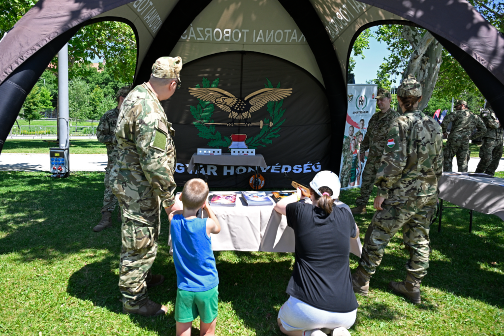 Akárcsak a nyár számos fesztiválján, a Nemzeti Sportügynökség kétnapos rendezvényén is jelen vannak a Magyar Honvédség Sportszázadjának tagjai, köztük a világbajnok, a tokiói olimpián pedig negyedik kajakos, Csizmadia Kolos.