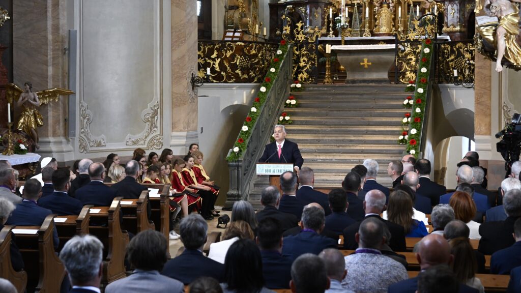 Címlapkép: Tihany, 2025. május 9. Orbán Viktor miniszterelnök beszédet mond a felújított tihanyi bencés apátság átadásán 2025. május 9-én.