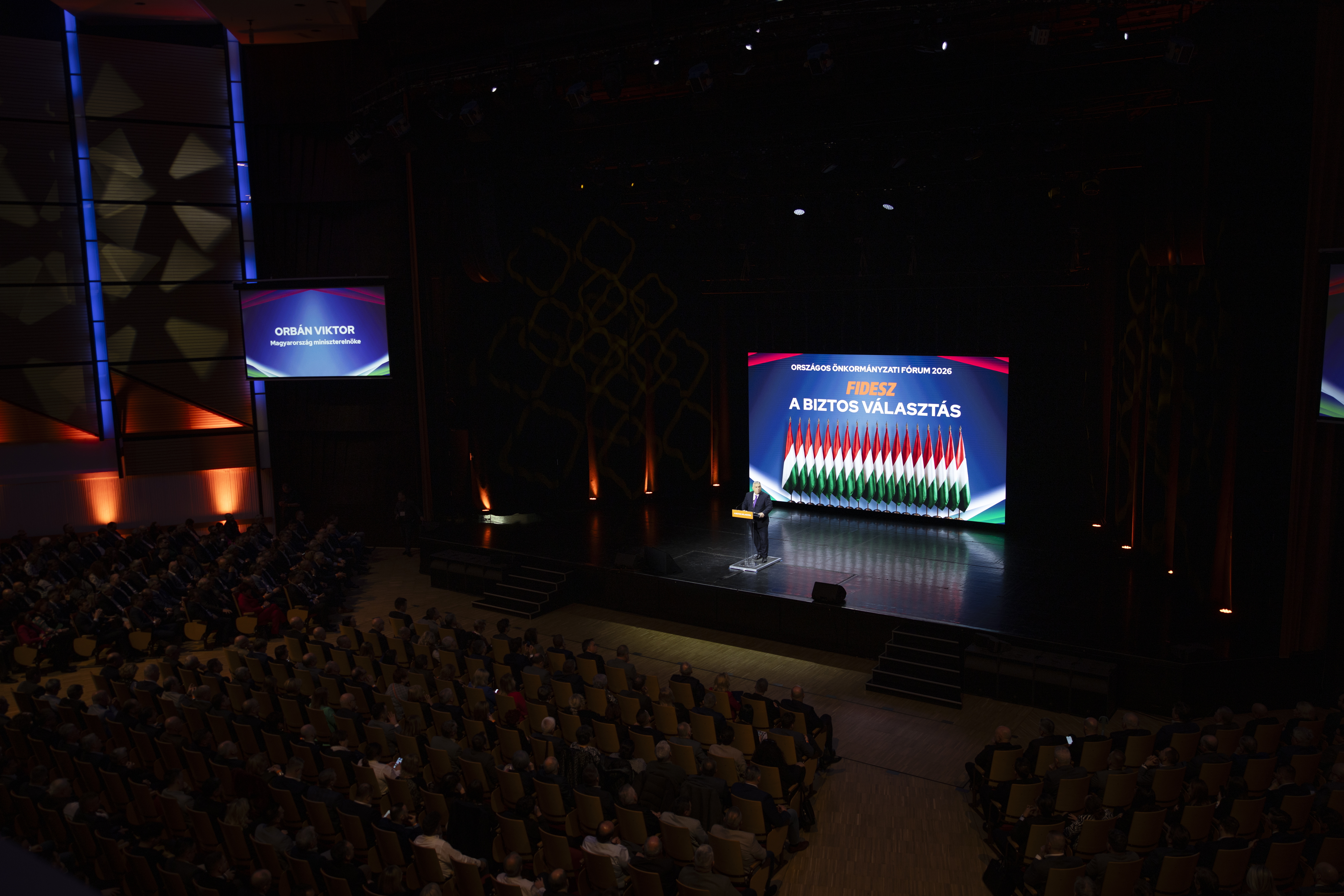A Miniszterelnöki Kommunikációs Fõosztály által közreadott képen Orbán Viktor miniszterelnök beszédet mond Az önkormányzatok a mi erõnk címû, a Fidesz által szervezett országos önkormányzati fórumon a Budapest Kongresszusi Központban 2026. január 19-én – Fotó: Miniszterelnöki Kommunikációs Fõosztály/Fischer Zoltán