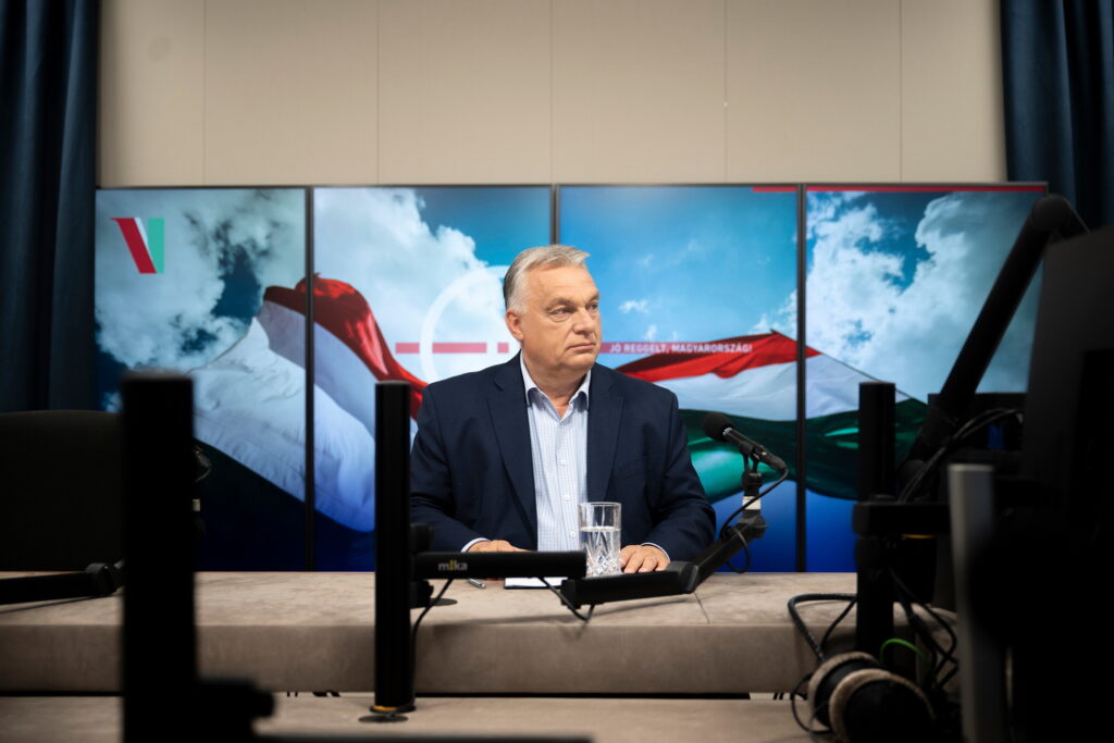 Fotó: A Miniszterelnöki Kommunikációs Főosztály által közreadott képen Orbán Viktor miniszterelnök interjút ad a Jó reggelt, Magyarország! című műsorban a Kossuth rádió stúdiójában 2025. július 4-én. MTI/Miniszterelnöki Kommunikációs Főosztály/Benko Vivien Cher