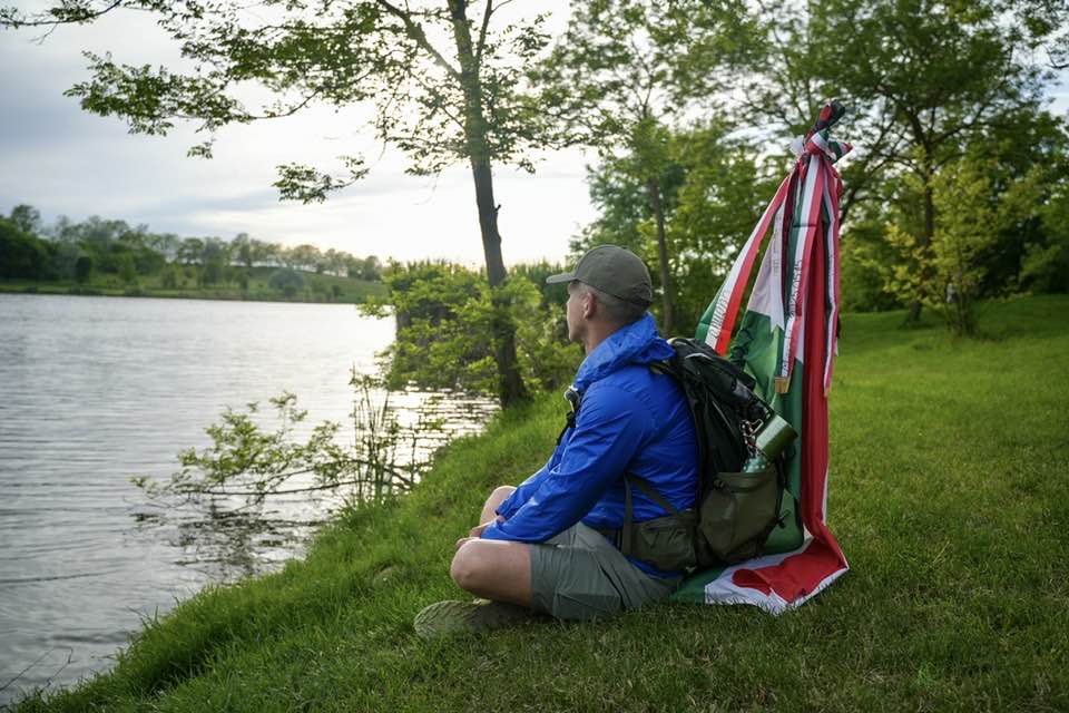 Címlapkép: Magyar Péter, a Tisza Párt elnöke (k) szimpatizánsai között a Hõsök terén 2025. május 14-én. Az ellenzéki párt elnöke egy magyar nemzeti lobogóval és egy hátizsákkal Budapesttõl, a Szent István Bazilikától gyalog csaknem 300 kilométert tesz meg a romániai Nagyváradig.