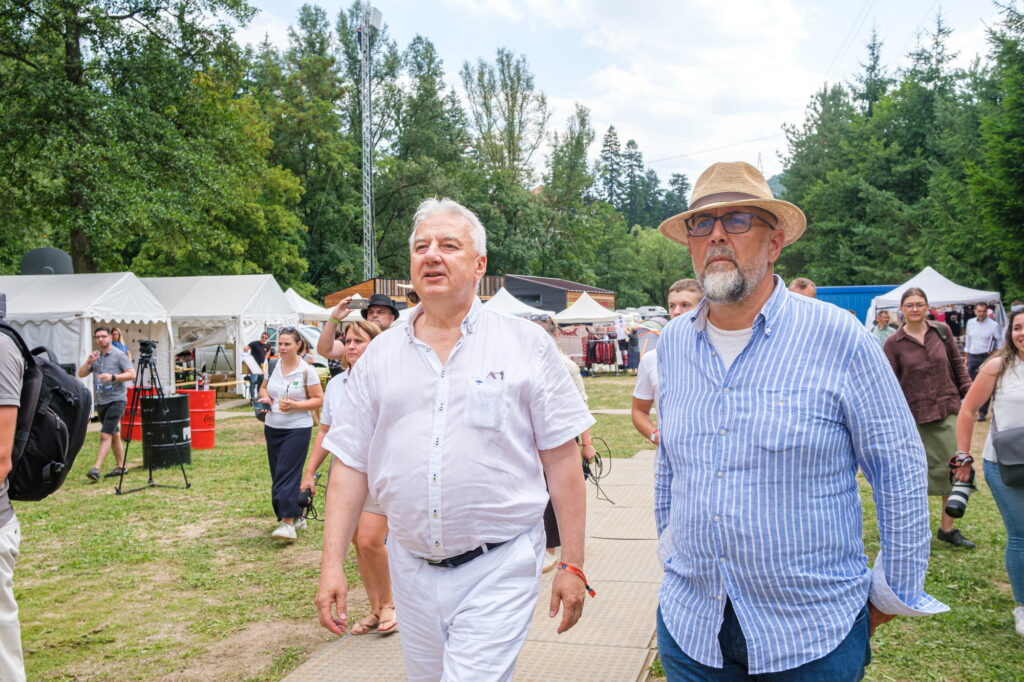Kelemen Hunor, a Romániai Magyar Demokrata Szövetség elnöke (b) és Semjén Zsolt miniszterelnök-helyettes a 34. Bálványosi Nyári Szabadegyetem Választások elõtt-után címmel rendezett pódiumbeszélgetése elõtt az erdélyi Tusnádfürdõn 2025. július 24-én.