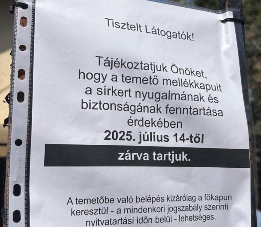 Karácsony Gergely bugyuta temetőzárása élt: egy napot – számolt be közösségi oldalán Szentkirályi Alexandra, miután Budapest főpolgármestere elrendelte, hogy július 14-től a nyári nyitvatartás idejében csak a főbejáratot használhatják a Farkasréti temetőbe látogatók.