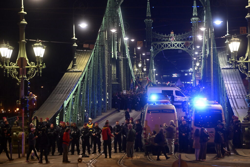 Mint írták, a Szabadság híd úttestjét jogellenesen elfoglaló embereket többször felszólították, hogy menjenek fel a járdára, akik az ismételt felszólításnak nem tettek eleget, a rendőrök vitték fel a járdára.